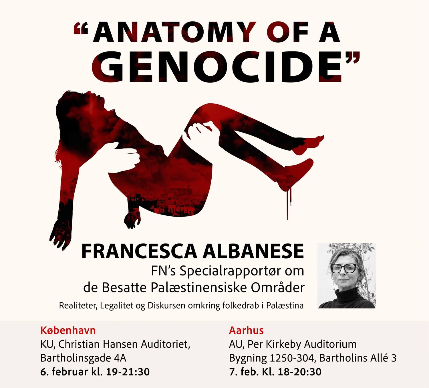 “Anatomy of a Genocide - Francesca Albanese” Arrangør: Nasim, DIC, Jøder for Retfærdig Fred, PSA Aarhus, PKI